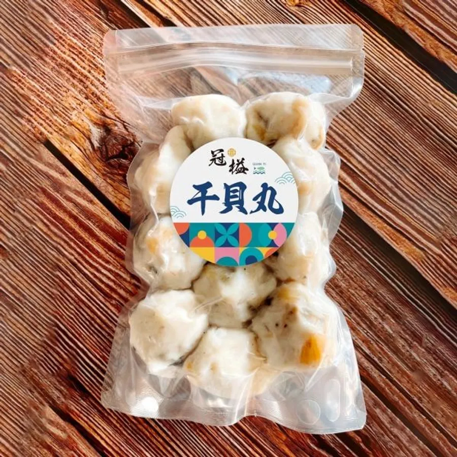 | 成 份: 花枝,干貝,磷酸二澱粉,旗魚漿,香菇,豬背脂油,食鹽,L麩酸鈉,品質改良劑 (多磷酸鈉,焦磷酸鈉), 甜味劑 (蔗糖素)
